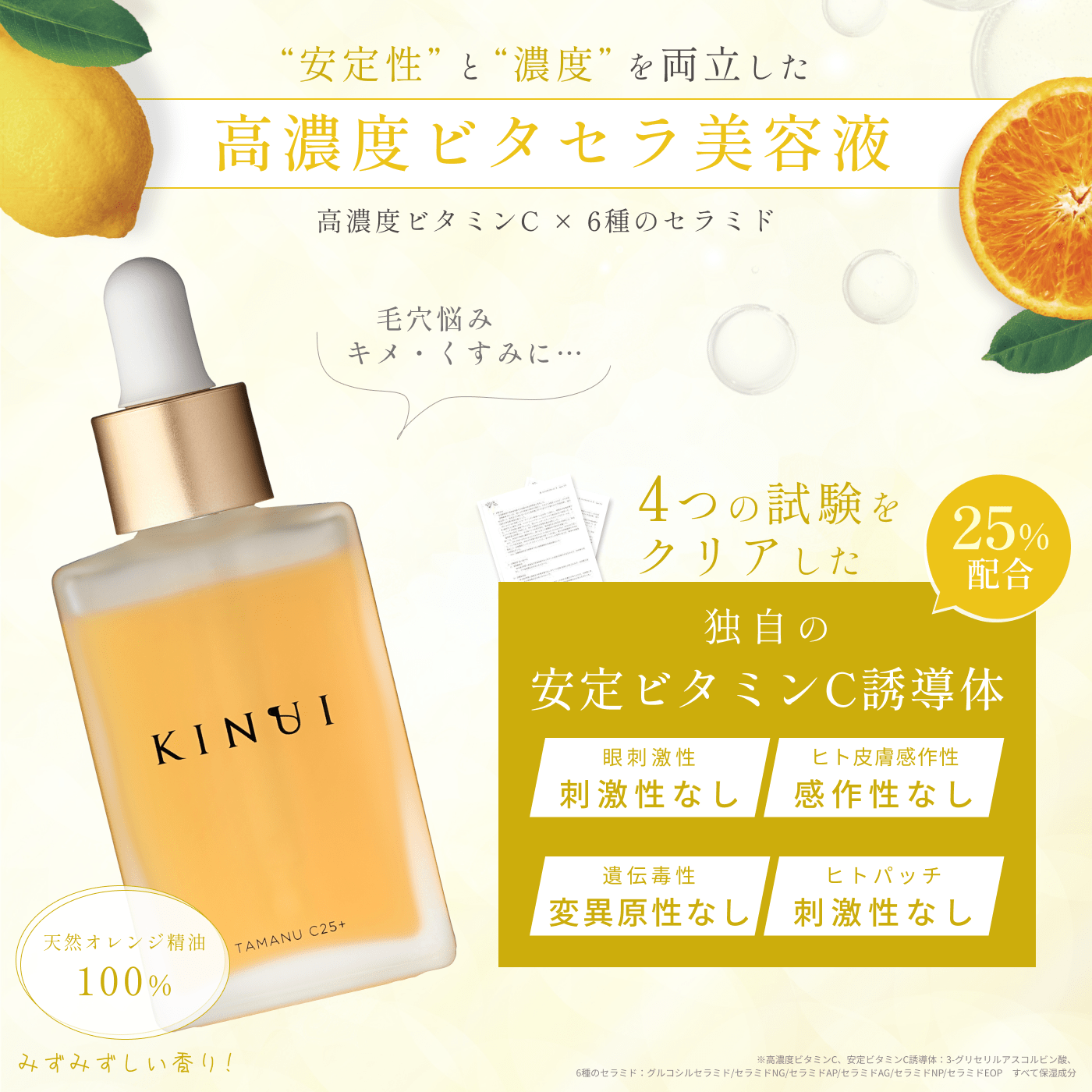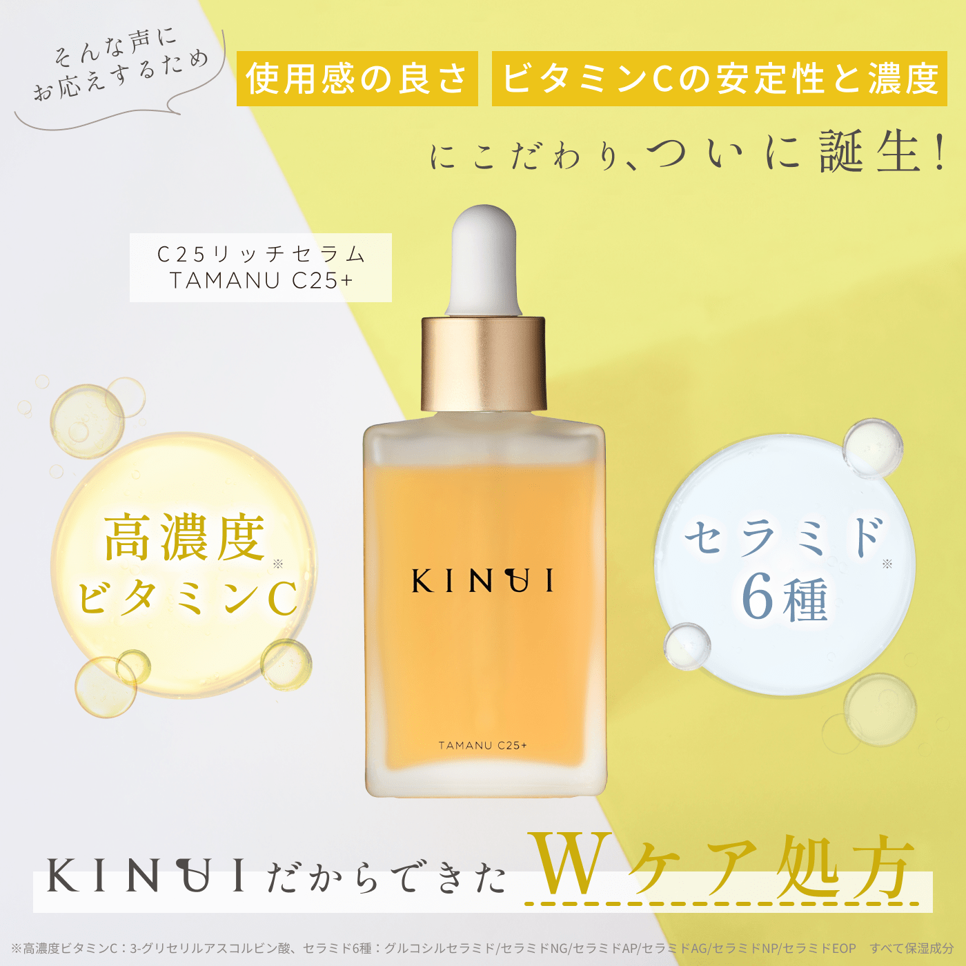 ※1沖縄県産タマヌオイル(保湿成分)ウ果汁発酵液、PCA-Na、グリセリン、酵母エキス、クエン酸、クエン酸Na、テトラヘキシルデカン酸アスコルビル、トコフェロール